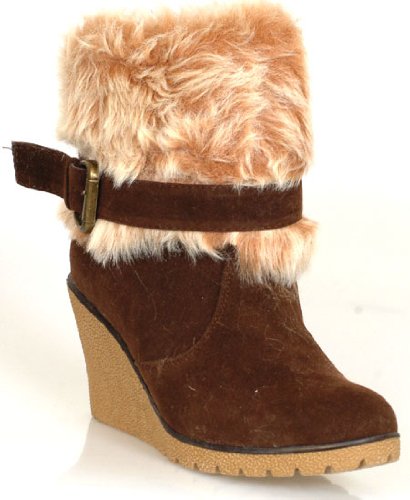 Set the fashion world on fire with these smokin' boots! Faux-Fur upper with buckled strap design. Stylish wedge heel. Lightly cushioned fabric footbed. Heel: 3" Total Height: 8" Circumference: 12" New: In Original BoxSKU: Sasha-2 Brown 8.5 wo8.5zz RIDER-STYLES Color: BrownCode: Sasha-2 Brown